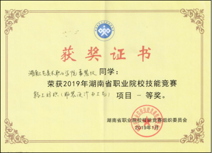 3.2019年1月罗钧元同学在2019年湖南省职业院校技能竞赛高职组服装设计与工艺项目荣获一等奖。