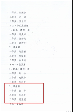 4.2019年1月李林芳同学在2019年湖南省职业院校技能竞赛高职组服装设计与工艺项目荣获一等奖。
