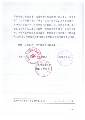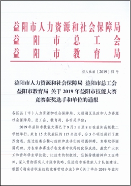 6.2019年9月益阳市技能大赛于9月5日至8日在益阳高级技工学校举行,经过组委会精心组织和选手们的顽强拼搏,竞赛取得圆满成功。我院董青、李林芳、肖慧媛三位同学分别荣获了时装技术学生组一、二、三等奖。