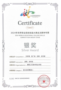 2024年10月刘雨晴、曾广妹、邱婷、吴军豪学生,荣获2024年世界职业院校技能大赛银奖。