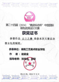 2024年12月赵能金学生,荣获第二十四届“真皮标志杯”中国国际箱包皮具设计大赛三等奖。