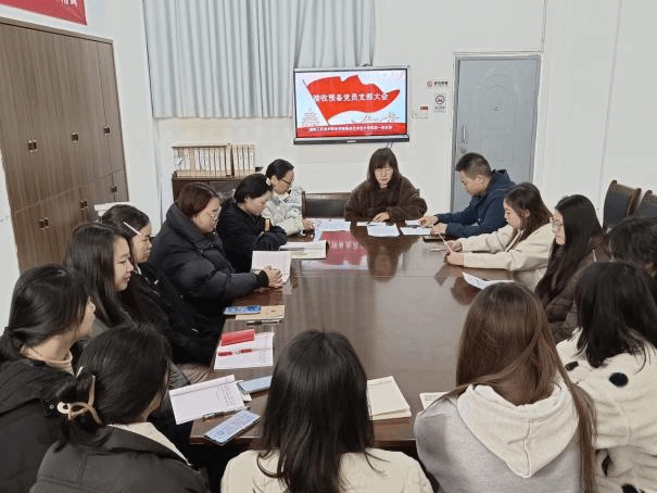 2024年11月29日,服装艺术设计学院学生第一党支部于逸美楼410召开支部大会,讨论接收吴月姣等4名同学为预备党员等事项。大会由党支部书记巩丽云同志主持,全体党员参加。