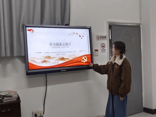 接着,由阳芯雨同志给大家上党课——《国家公祭日》,各党员同志认真聆听,并一同观看红星云发布12月“一月一课一片一实践”