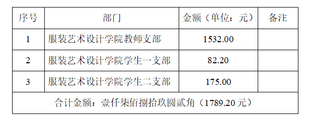 服装艺术设计学院党总支2020年8月党费收缴汇总表
