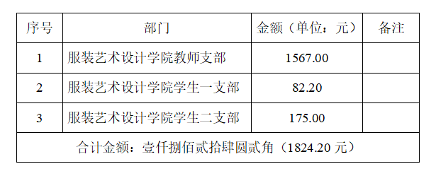 服装艺术设计学院党总支2020年10月党费收缴汇总表