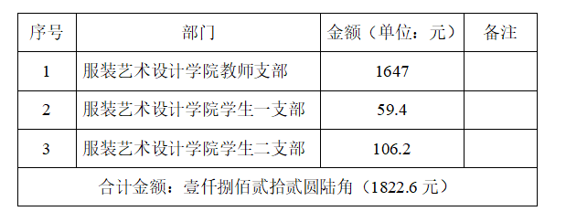 服装艺术设计学院党总支2021年元月党费收缴汇总表