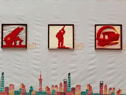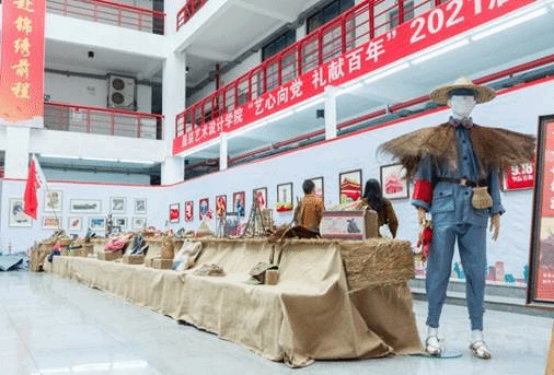 益阳校区逸美楼一楼天井展出了由艺术设计专业(纺织品艺术设计方向)师生精心创作的建党100周年15幅纤维艺术作品,作品以“百年辉煌”为创作主线,讲述了从中国共产党1921年7月诞生到2021年建党100周年走过的重要历程。