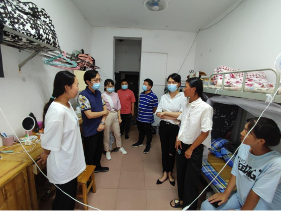 国庆长假将至,9月29日下午,学院党总支书记曾正辉、学院院长高建民、总支副书记周学莲一行带领辅导员们到学生宿舍开展例行安全检查并慰问新生,大家重点检查了排插使用情况,认真排查了宿舍存在的安全隐患,并与新生进行了亲切的交谈,老师们详细询问了新生们对校园学习生活环境的感受、耐心听取新生们的意见建议,叮嘱新生们要了解宿舍安全管理要求,尤其要严格遵守宿舍安全管理规定,要与室友、同学互相帮助、和睦相处、尽快适应新的环境,融入美院这个大家庭,老师们还着重跟新生们强调了国庆假期回家及返校的注意事项,并祝同学们度过一个快乐祥和的国庆假期。