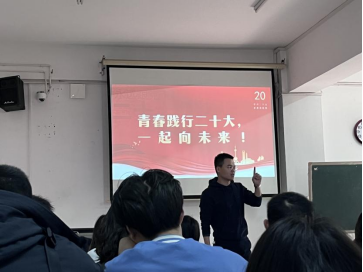 学院全体辅导员精心组织班会,通过主题学习、观看视频、交流互动等方式引导同学们紧紧围绕“爱国”“团结”“奋斗”“科学”“互助”五个关键词,分享如何践行党的二十大精神,争做新时代好青年。