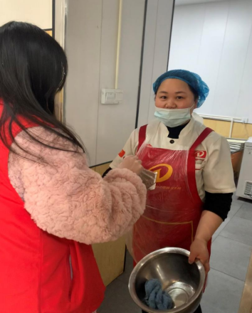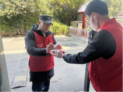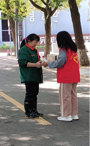 学院团总支组织青年志愿者们给环卫工人、医护人员、食堂阿姨等送上爱心物品。