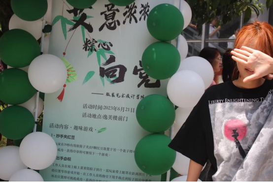 历史长河奔腾不息,中华文明源远流长,先贤哲人、琴棋书画、山川平原、大江大河,它们如同朵朵浪花,汇成中华文明的最美赞歌。为了让同学们更加了解中国的传统节日,用心去体验我国的传统节日中蕴涵的意义,更好地弘扬中华优秀传统美德,服装艺术设计学院团总支于2023年6月21日在逸美楼前门举办“艾意浓浓,粽心向党”端午节主题活动。