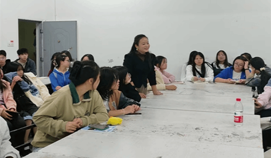 专业带头人曹贞贞为皮具艺术设计专业(时尚箱包设计与工艺方向)的新生做专业教育