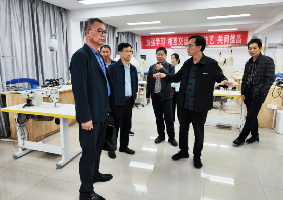 高长生一行首先参观了逸美楼展厅、一号艺术工厂、致美表演厅、董青工作室、正在建设中的中国轻工业工艺美术传统印染技艺工程技术研究中心等实训场地以及刚竣工的新校区部分设施,并赞扬了我校服装专业办学实力和育人成效。