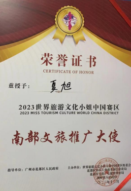 我校选手夏旭被评选为2023世界文化旅游大使中国湖南赛区亚军