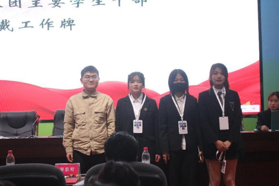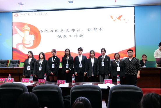 团总支书记汤卿为团总支部长、副部长佩戴工作牌