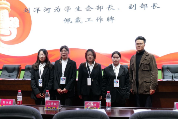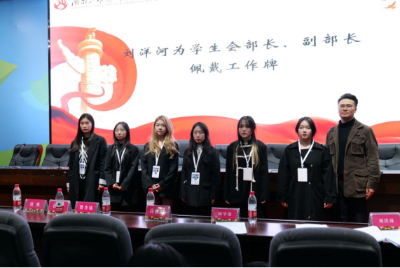 学生会指导老师刘洋河为学生会主要干部颁发聘书