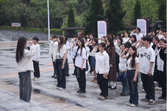 青年则国兴,青年强则国强,大家举起右手,在烈士墓前庄严宣誓:“人民为先,祖国至上,诚实勇敢,自律自强;奋发有为,誓作栋梁;勇担使命,振兴中华。
