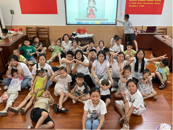 孩子们与志愿者合影留念