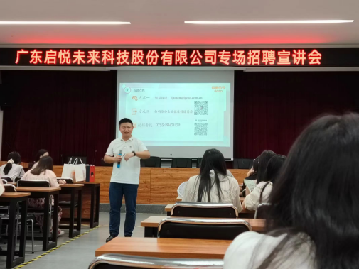 2024年9月24日,一场备受瞩目的广东启悦未来科技股份有限公司专场招聘宣讲会在湖南工艺美术学院逸美楼成功举办。此次招聘会不仅为应届毕业生搭建了一个展示自我、对接企业的优质平台,也进一步加深了校企之间的合作与交流。