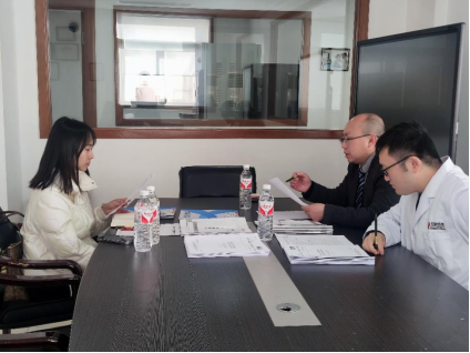 蒋芊求与大荣仪器公司负责人张大鹏、检测中心主任倪慧丰的合影