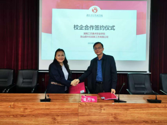 刘玉方在签约仪式介绍了龙山县委、县政府支持产业发展的部署,并表示龙山县十分关注本次合作项目,目的是想让古老技艺“活”起来、让民族文化产业“强”起来。通过校企协同创新培育关键技术、孵化特色产品、培养专业人才,打造土家织锦产业化标杆;县委县政府会提供政策保障与平台支撑;希望叶氏公司抓住机遇,对接高校资源加速工艺革新与品牌升级,确保项目高效落地。这一战略将实现非遗活态传承与产业振兴的双赢目标,为民族文化产业创新发展树立示范样板。