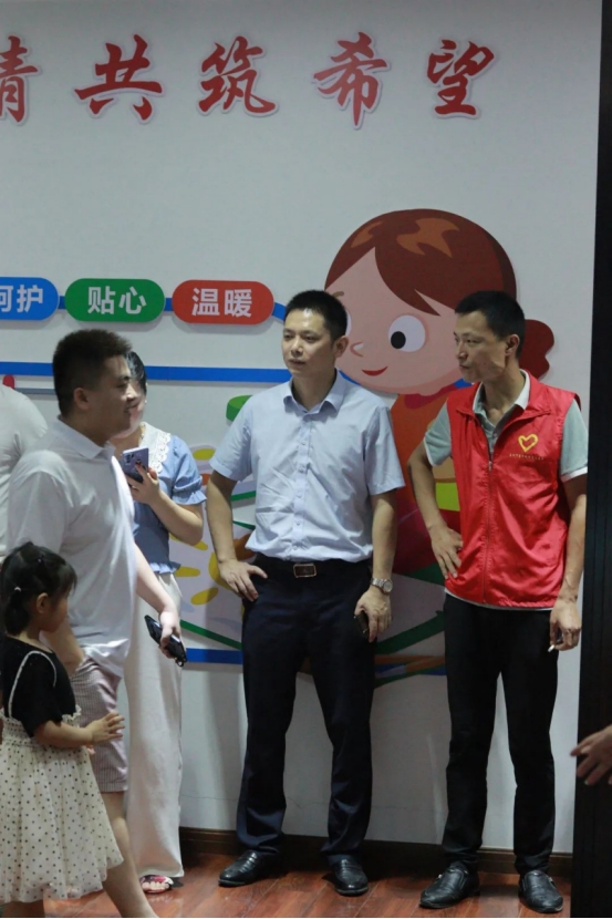赫山区团区委书记田亮、副书记喻哲丹、龙光桥街道团工委书记夏贝伶,服装艺术设计学院“递福巴士”志愿者团队带队老师汤卿和8名志愿者同学,以及参与本次“ 七彩假期 情暖童心”活动的小朋友和家长们参加了启动仪式。