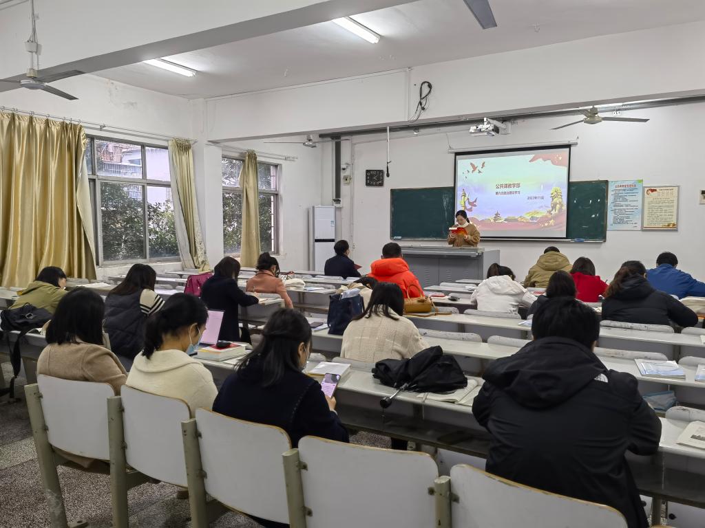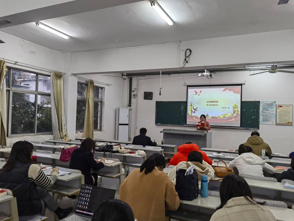 公共课教学部党支部2022年下学期第六次政治理论学习于11月29日下午,在蕴美楼302教室顺利展开,学习内容为《党的二十大学习辅导读本》中的部分内容。会议由书记洪华平主持。