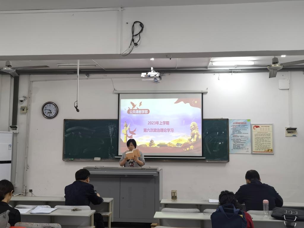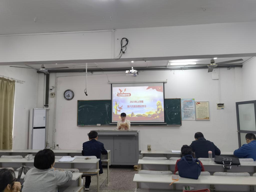 5月9日下午,公共课教学部党支部于蕴美楼302教室开展本学期第六次政治理论学习。会议由支部书记洪华平主持。本次会议主要学习了《习近平著作选读》部分章节与文件《关于进一步贯彻落实中央八项规定精神实施办法的有关规定》。
