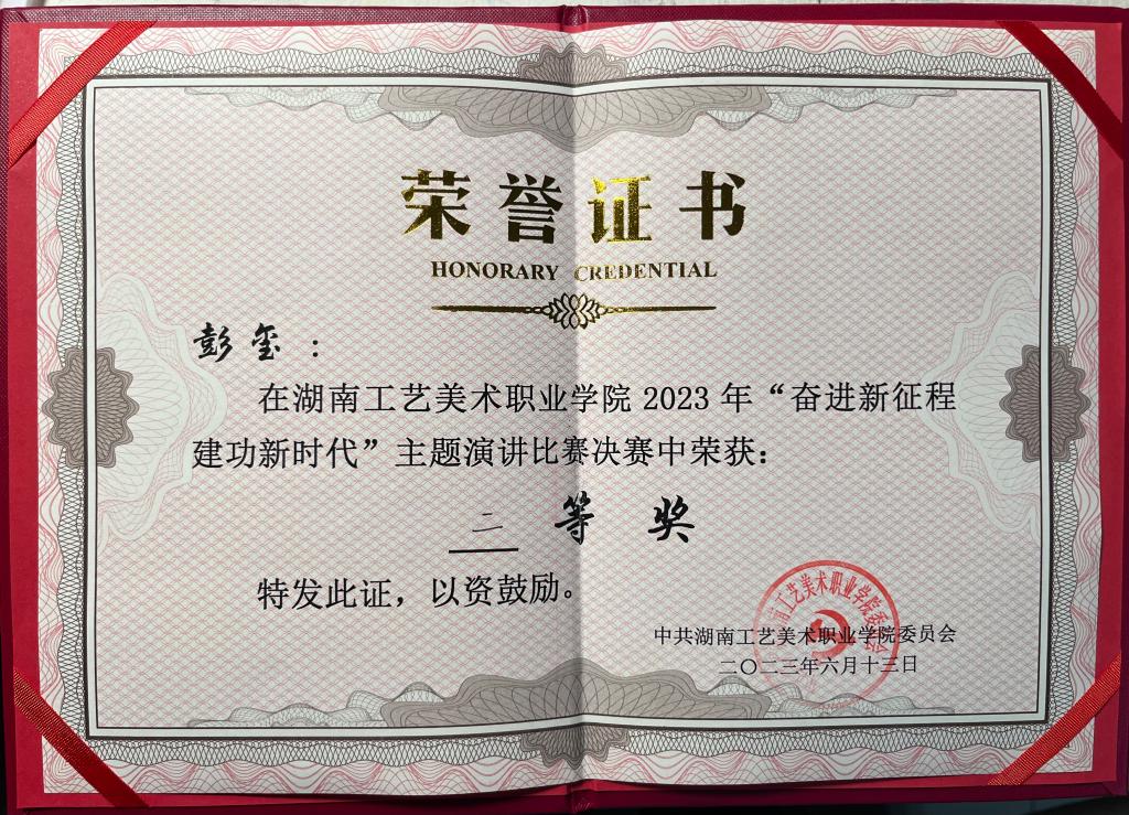 为深入学习宣传贯彻党的二十大精神,进一步推动学习贯彻习近平新时代中国特色社会主义思想主题教育走深走实,6月13日下午,学校在致美楼206会议室举行学习新思想主题演讲比赛决赛,我支部选派彭玺老师参加。