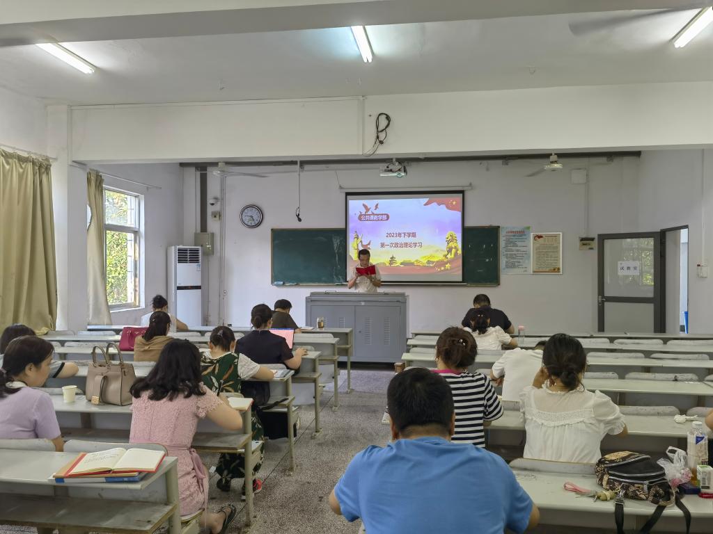 9月19日下午,公共课教学部党支部在蕴美楼302教室开展了2023年下学期第一次教职工理论学习。会议由支部书记洪华平主持。