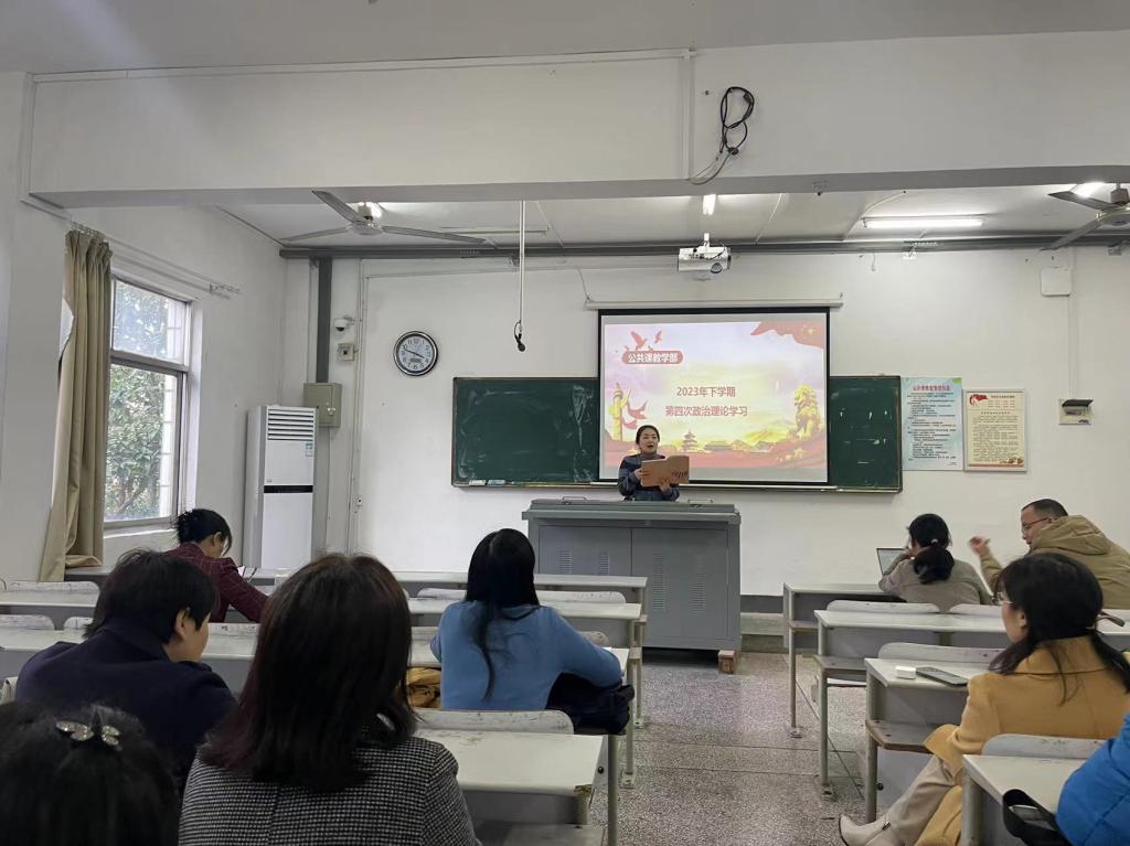 11月14日下午,公共课教学部党支部于蕴美楼302教室召开本学期第四次政治理论学习会议,会议由支部书记洪华平主持。