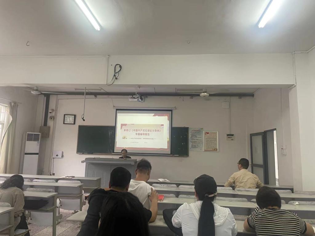 2023年12月,党中央正式颁布了经过修订的《中国共产党纪律处分条例》(以下简称《条例》)。为进一步严明党的政治纪律和政治规矩,推动党的各项纪律全面从严,学习好、宣传好、执行好《条例》,5月7日下午,支部书记洪华平为全体党员讲授《中国共产党纪律处分条例》专题党课。