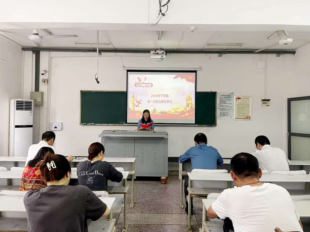 9月20日下午,公共课教学部党支部在蕴美楼302教室召开本学期第一次政治理论学习,会议由支部书记赵继学主持,部门全体成员参加学习。