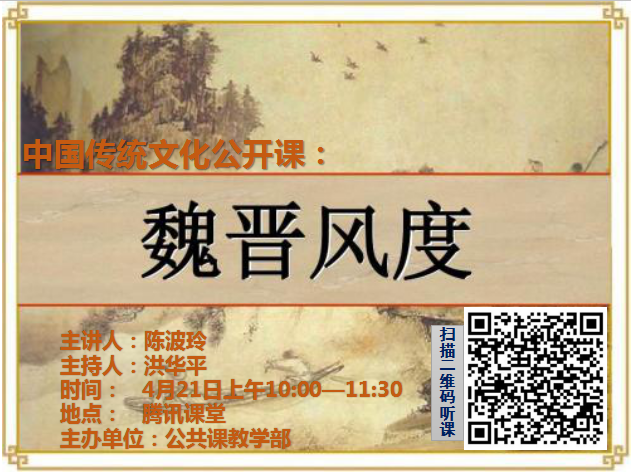 4月21日10:00——11:30陈波玲老师主讲的《魏晋风度》备受关注,学校教学督导室周学文教授、李碧高教授、公共课部洪华平主任以及人文通识教研室全体教师参与了此次公开课活动。陈波玲老师从社会、行为、精神三个层面阐述魏晋风度的表现,从审美、精神世界两个层面分析了魏晋风度的当代价值。授课过程中陈老师与学生积极互动,氛围热烈,激发学生深入理解和思考,畅谈感想和体会。在举手提问环节,人文通识教研室专兼职教师参与讲解,从不同角度进行解读,进一步加强了学生对魏晋风度精神内涵的理解。陈波玲老师教学功底扎实,具备独特的教学风格,在教学手段上进行了新的探索和尝试,为我们呈现出一堂生动的教学直播课。