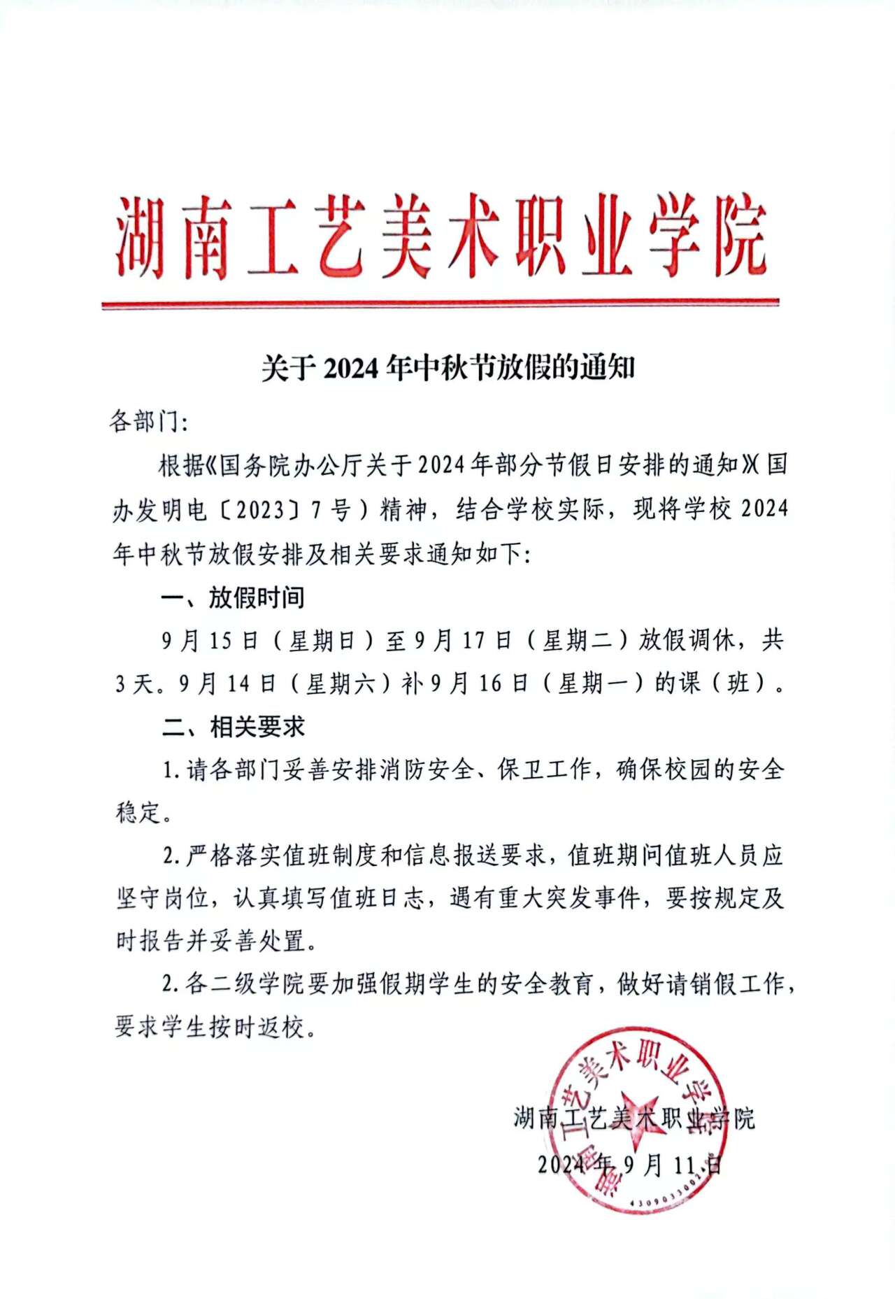 2024年中秋节放假通知