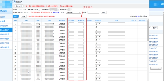 2、选择课程对应的成绩录入方式(分数制),进行成绩录入。