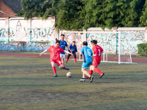 6月22日,下午随着裁判员一声响亮的哨声,巅峰对决拉开序幕。一开场,校女足代表队毫不示弱,通过快速的传导球试图拉开教工队严密的防线。但更为老道的教工队稳扎稳打,等待机会。在比赛进行到第12分钟的时候,教职工足球队抓住女足队伍的一次传球失误形成了快速反击,可惜被校女足守门员精彩的倒地扑救拒之门外。服装学院的柳文海老师快速发出角球,埋伏在罚球区内的林向武老师心领神会插入前点高高跃起一记回头望月攻破了守门员的十指大关。取得领先的教工队高举压上,想乘胜追击。可惜,被校女足队长雷铭晶当头一棒,她通过娴熟的个人技术,晃过防守队员,迅速扳平了比分。随着时间推移教工队体能不断下降,前后场严重脱节,空洞的后防线再次被女足整体的团队配合所突破,女足队长连下两城反超了比分。利用中场休息的时间,教工队伍才得以喘息。教工队教练员张彦斌通过人员调整改变战术安排,分别将招生就业处副处长邓剑利和环艺学院喻里遥、张浩益老师替换上场。果不其然得到调整后的教工队元气满满,环艺学院林向武老师斩获2球,下半场头顶脚踢抓住机会反超了比分,最终以5:2拿下了本场巅峰之战。4轮战罢,教工男子足球队积8分暂居榜首。6月29号,最后一轮,面对积分垫底的服装学院代表队,会有怎样的结果,让我们拭目以待。