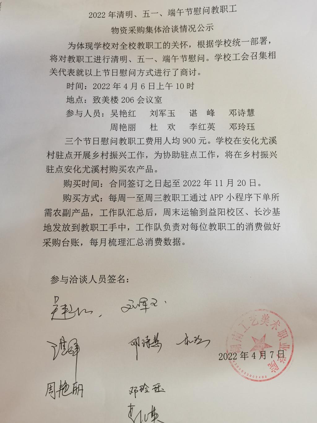 2022年清明、五一、端午节慰问教职工物资采购集体洽谈情况公示