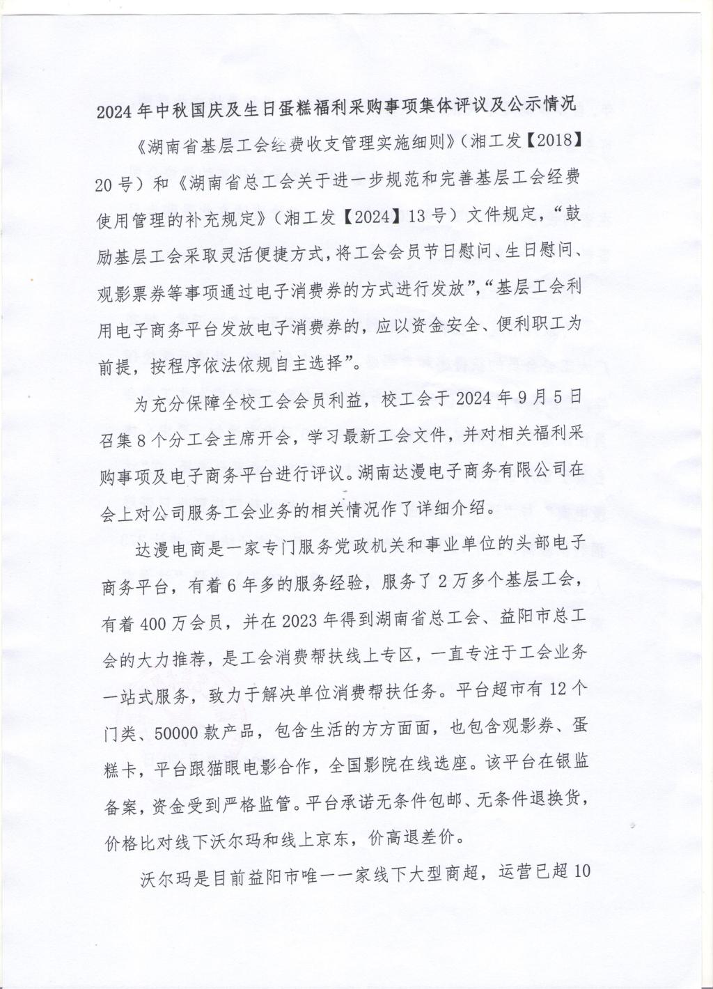2024年中秋国庆及生日蛋糕福利采购事项集体评议及公示情况