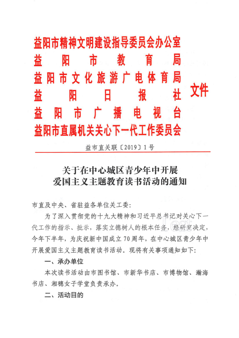 关于在中心城区青少年中开展爱国主义主题教育读书活动的通知