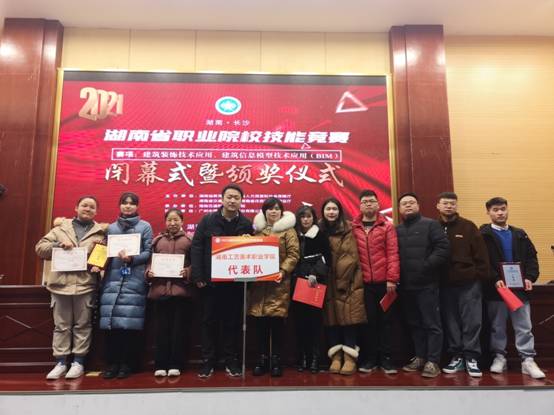 其中,付月姣、彭婷老师指导学生团队获高职组建筑装饰技术应用项目一等奖,梅子胜、熊雪姣老师指导学生团队获二等奖;刘建村老师指导学生团队获建筑工程识图项目三等奖、张海雁老师指导学生团队获艺术插花项目三等奖。