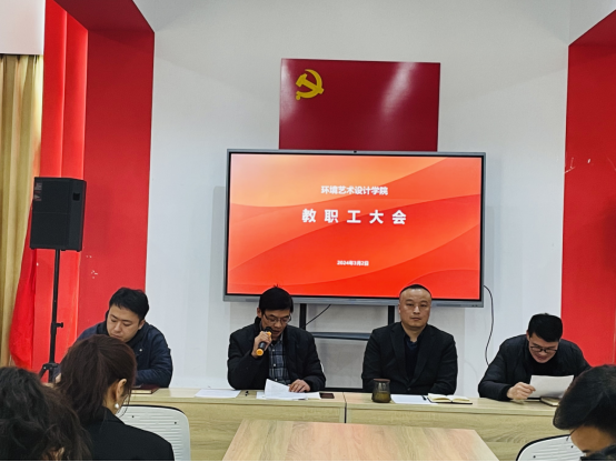 3月2日下午,环境艺术设计学院在尚213组织召开了本学期期初教职工大会,学院全体教职工准时参加,会议由党总支书记吴国华主持。