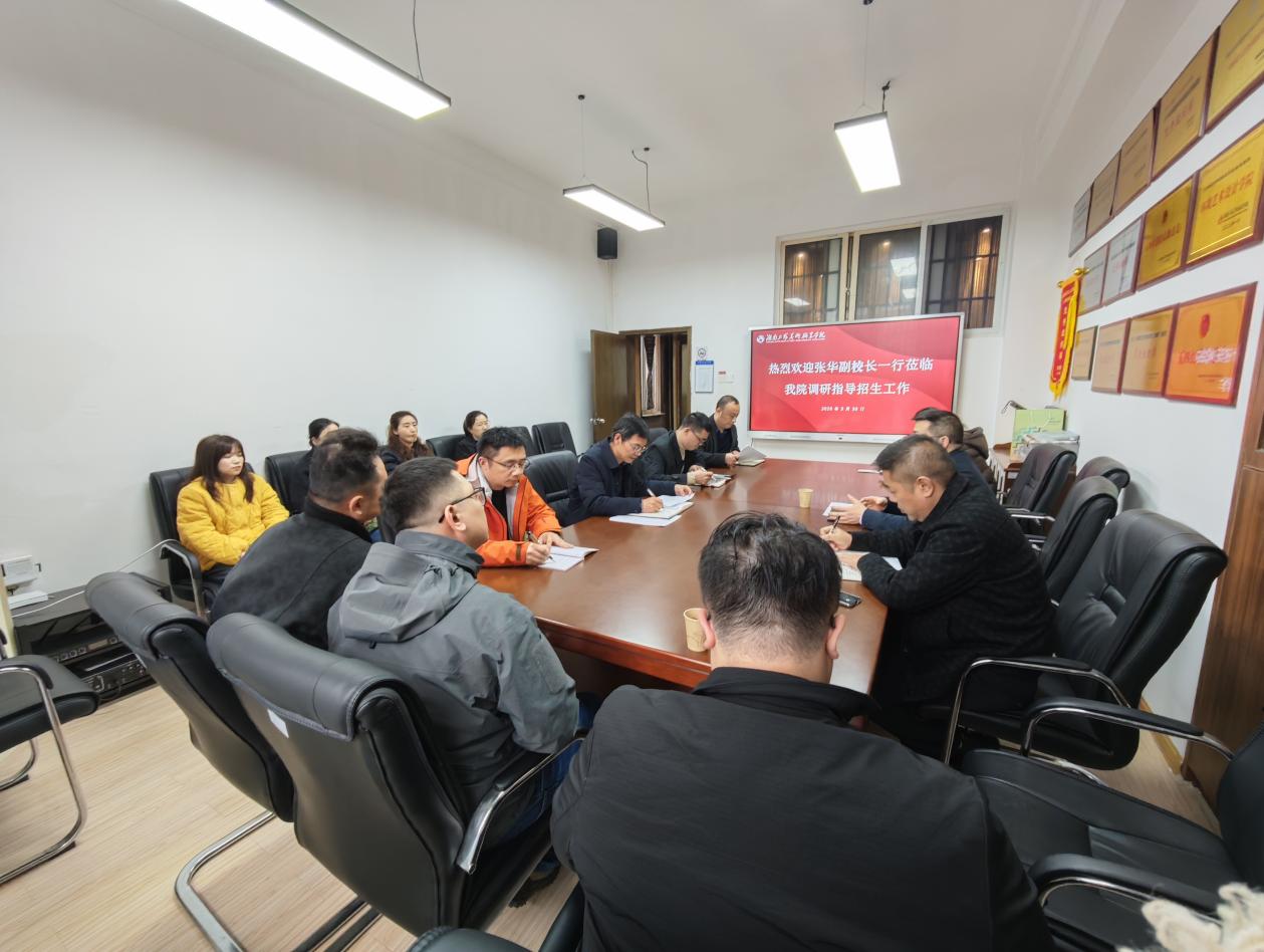 张华副校长在听取汇报后,对学院前期的招生工作给予肯定,并就下一步工作提出明确要求。他指出,要精准把握招生政策导向,深入研判生源结构变化,创新宣传方式,依托新媒体平台讲好专业故事,同时加强与优质生源基地的常态化联系,多措并举、多渠道提升招生质量。