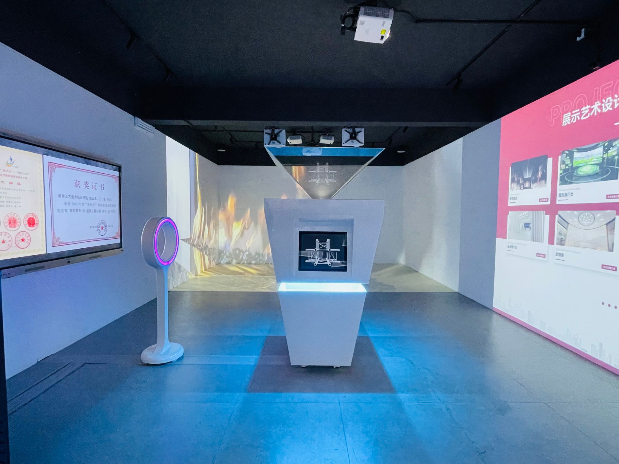 尚美楼展区以方案设计为主,各专业分区域进行展示。新建的艺术与科技融合创新实训室中,特别设置了四折幕沉浸式体验区,参观者可以身临其境地感受我院各专业优秀毕业设计作品的艺术魅力,吸引了众多观众驻足欣赏。同时,我院的办学成果也在尚美楼展厅同步展出。