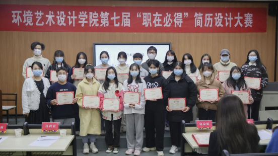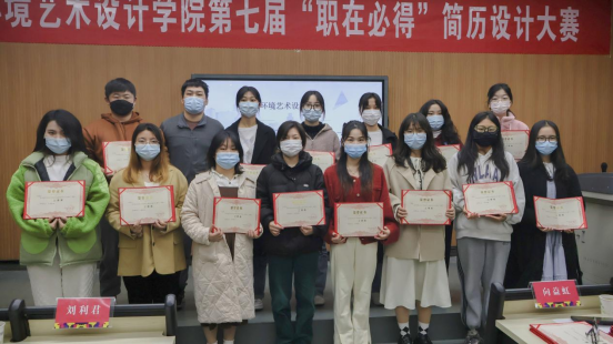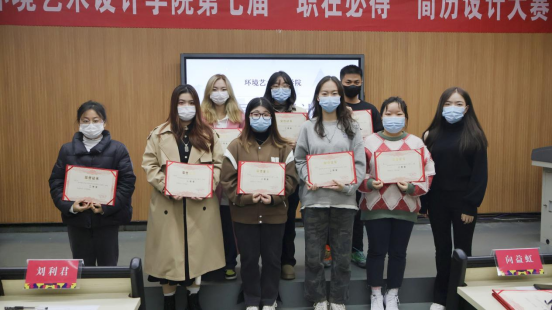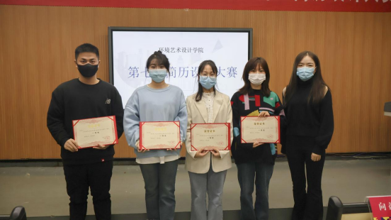 2022年11月23日14:00,环境艺术设计学院在尚美楼214举行““简自我风采,历职场未来”第七届简历设计大赛。本次活动由刘欣欣主持,环艺学院党总支副书记刘利君、双创学院教师向益虹、环艺学院辅导员向利、环艺学院辅导员刘诗雨、环艺学院就业专干李钎钎担任大赛评委。