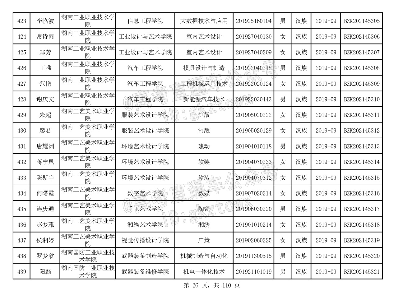 湖南2020-2021学年度本专科生国家奖学金获奖学生名单(部分)