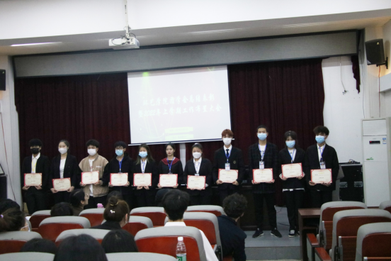 接下来,由学生会指导老师谭思晴讲话并为学生会优秀志愿者、优秀学生干部名单、学习之星颁发荣誉证书。谭思晴强调,全体成员要加强学习,提升自我,做好计划,重在落实。将工作实效和成就感摆在第一位,善于创新,重在坚持。