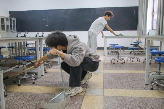 学生们在辅导员老师的指导下,积极行动起来,确保教室内无卫生死角,做到窗明几净、物品摆放整齐。