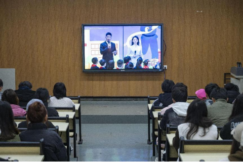 环境艺术设计学院学生集中观看火灾疏散逃生演练公开课