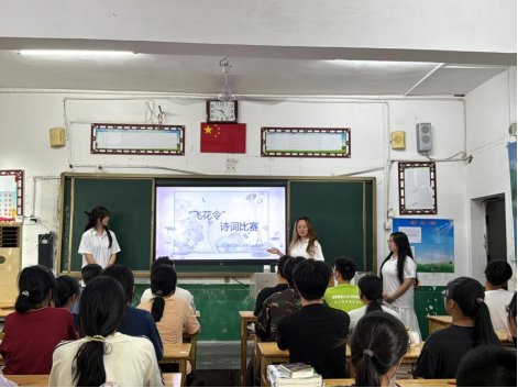 7月7日--11日,环境艺术设计学院“推普传声”大学生志愿者服务队通过开展“推普知识下课堂”、“飞花令”诗词比赛、“声动青春、韵诵中华”诗文朗诵比赛等丰富多彩的活动推广普通话,以青春力量为乡村振兴添砖加瓦。
